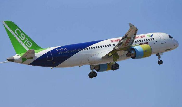 國產C919大型客機:是中國首款按照最新國際適航標準,具有自主知識產權的干線民用飛機。2017年5月5日成功首飛,截至2017年6月13日累計獲24家客戶600架訂單,2019年8月1日,C919大型客機104架機在上海浦東機場完成首次飛行試驗。